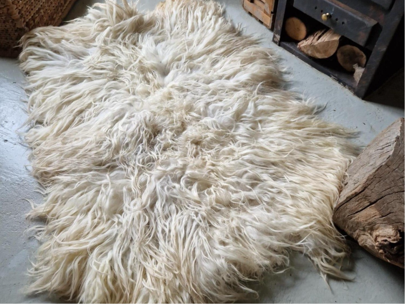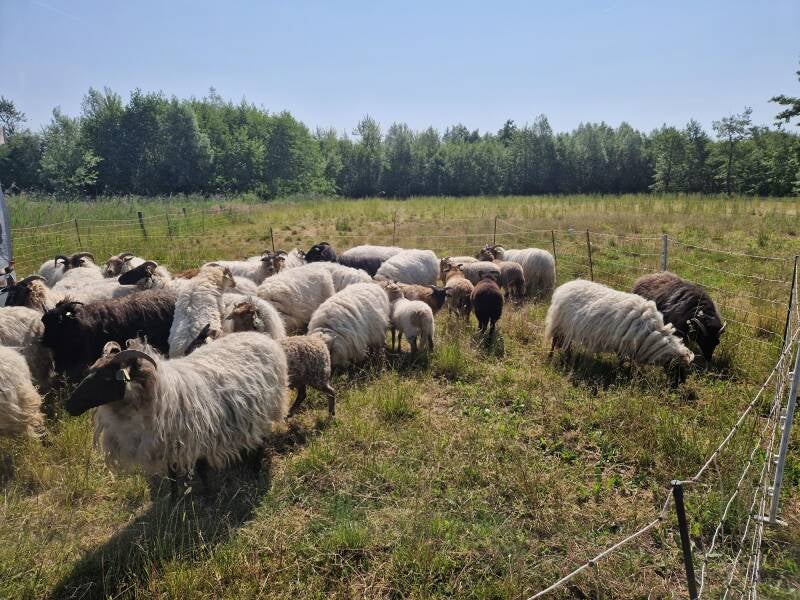 De wol komt van een Drents Heideschaap uit Flevoland, waar hij graast in een cultuurlandschap. Op de foto zie je niet de ram, maar wel de ooien uit deze kudde.