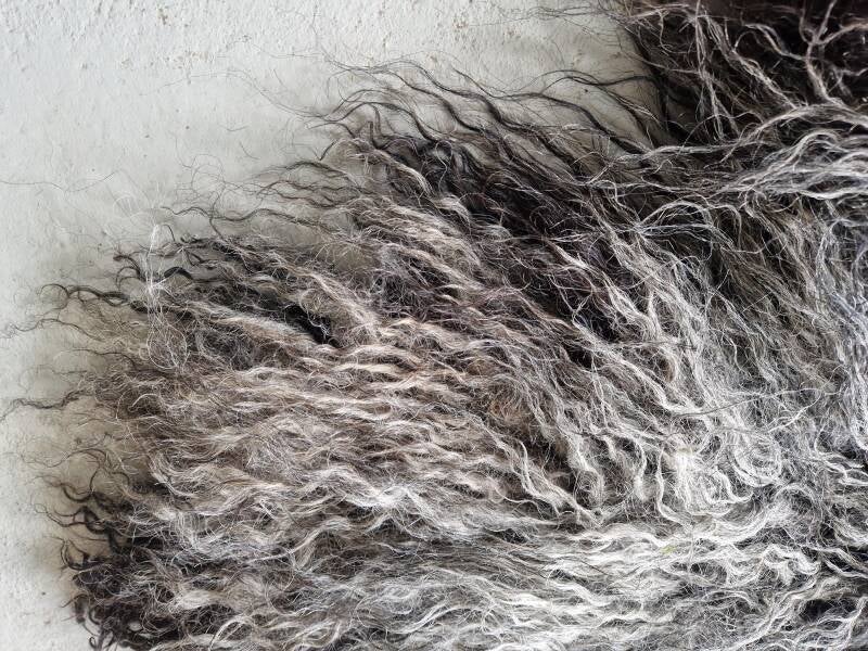 De wol komt van een Racka schaap uit Drenthe, waar ze woont in een hobbykudde.
