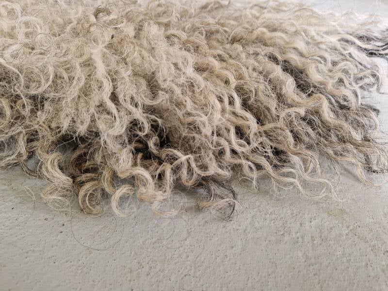 De wol komt van een Racka schaap uit Drenthe, waar ze graast in een hobbykudde.
