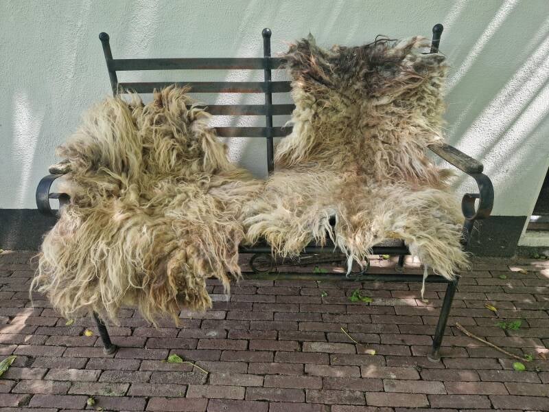 De wol komt van een Skudde schaap uit Brabant. De kudde wordt door de eigenaresse goed verzorgd en gebruikt om met Border Collies te trainen.