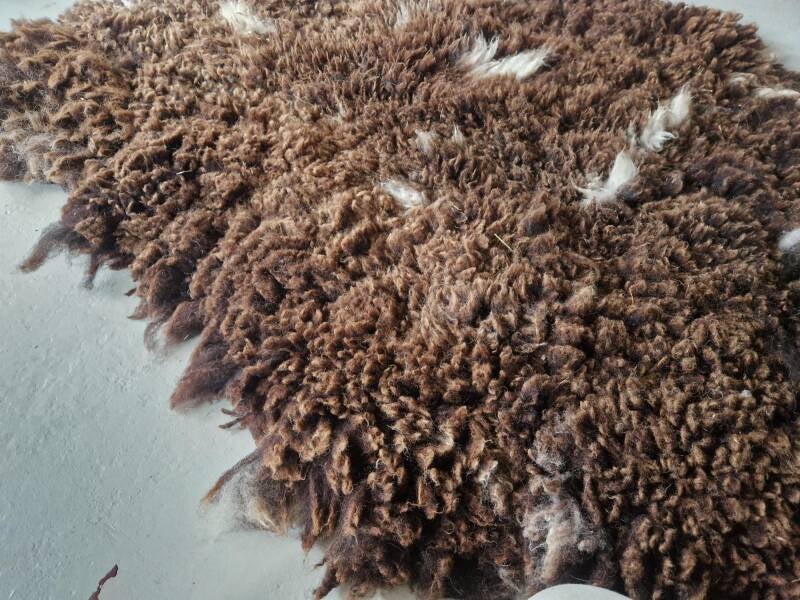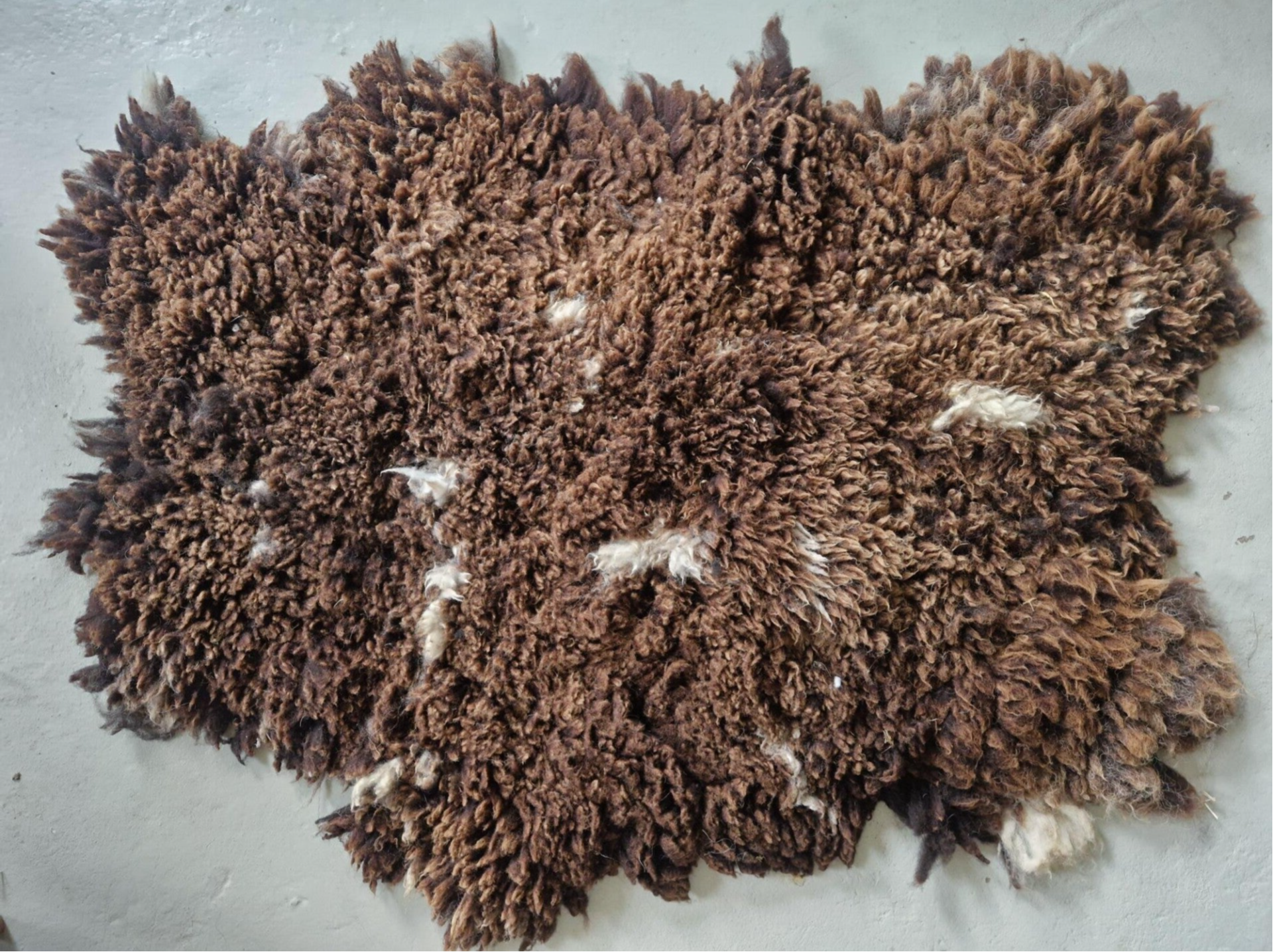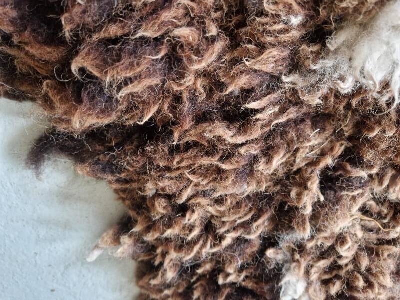 De wol komt van een Nederlands Bont schaap, dat leeft bij een hobbyboer in Gelderland.