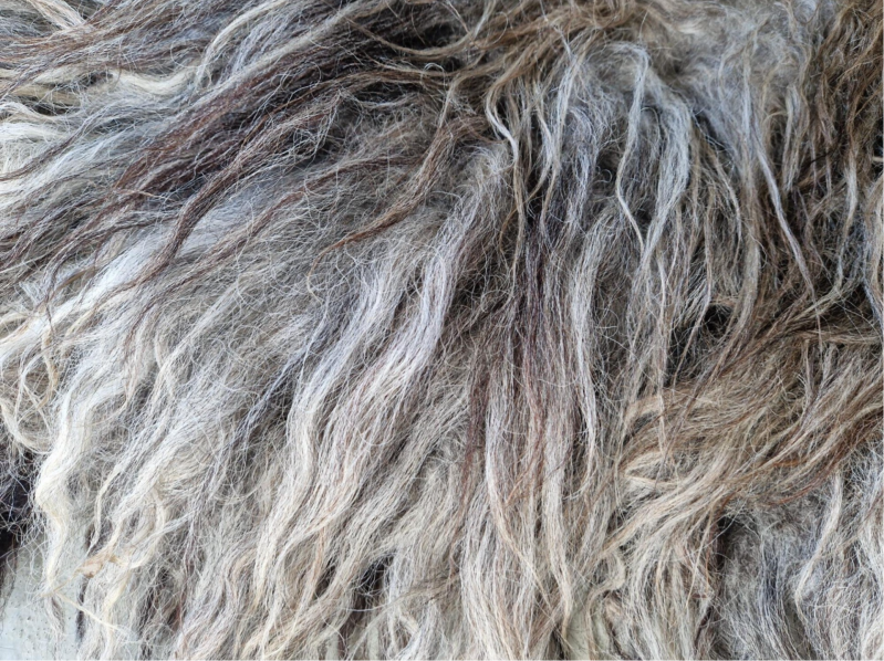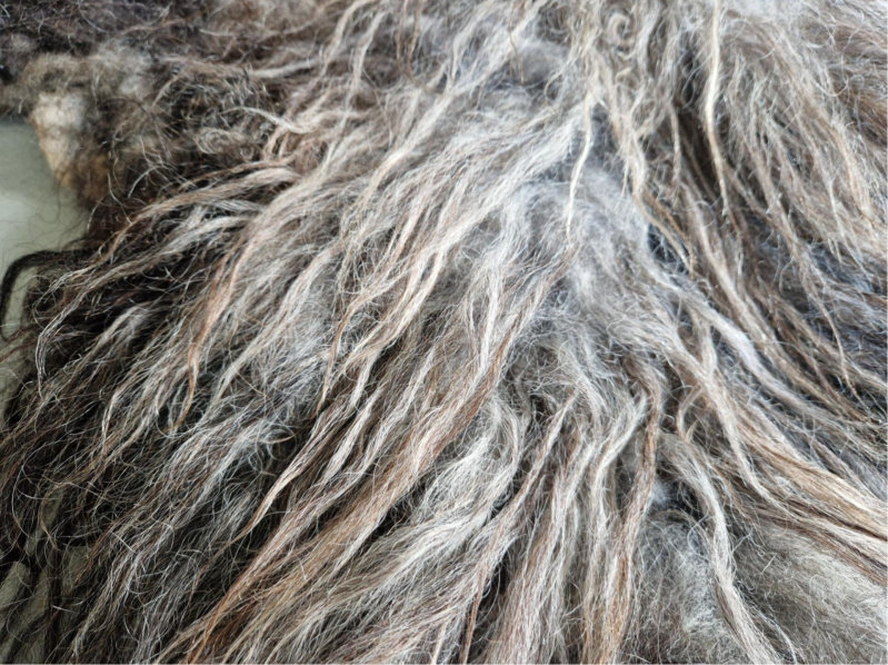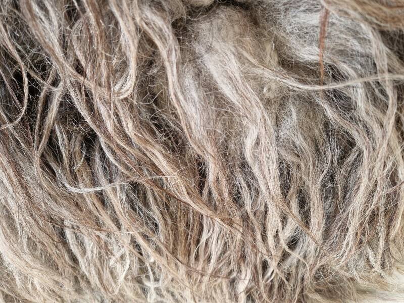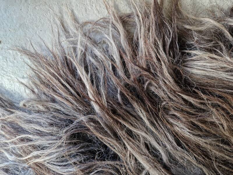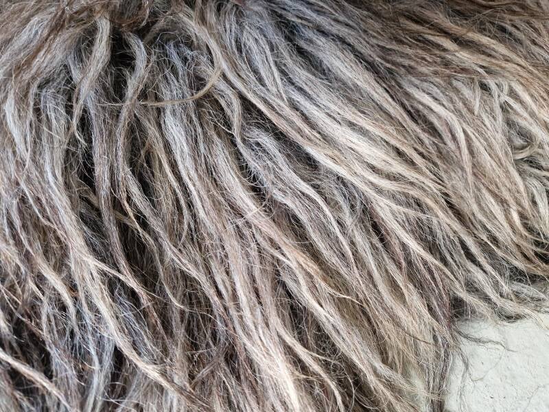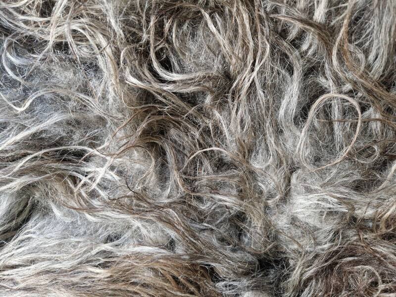 Grote vacht met prachtige kleurnuances in grijs, taupe en bruinig. De lokken zijn lang en zacht.