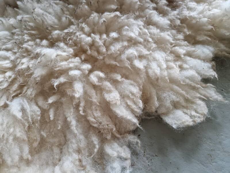 Heerlijk zachte vacht van kortharige Swifterwol. Warm wolwit van kleur, in de punten wat grauwig.