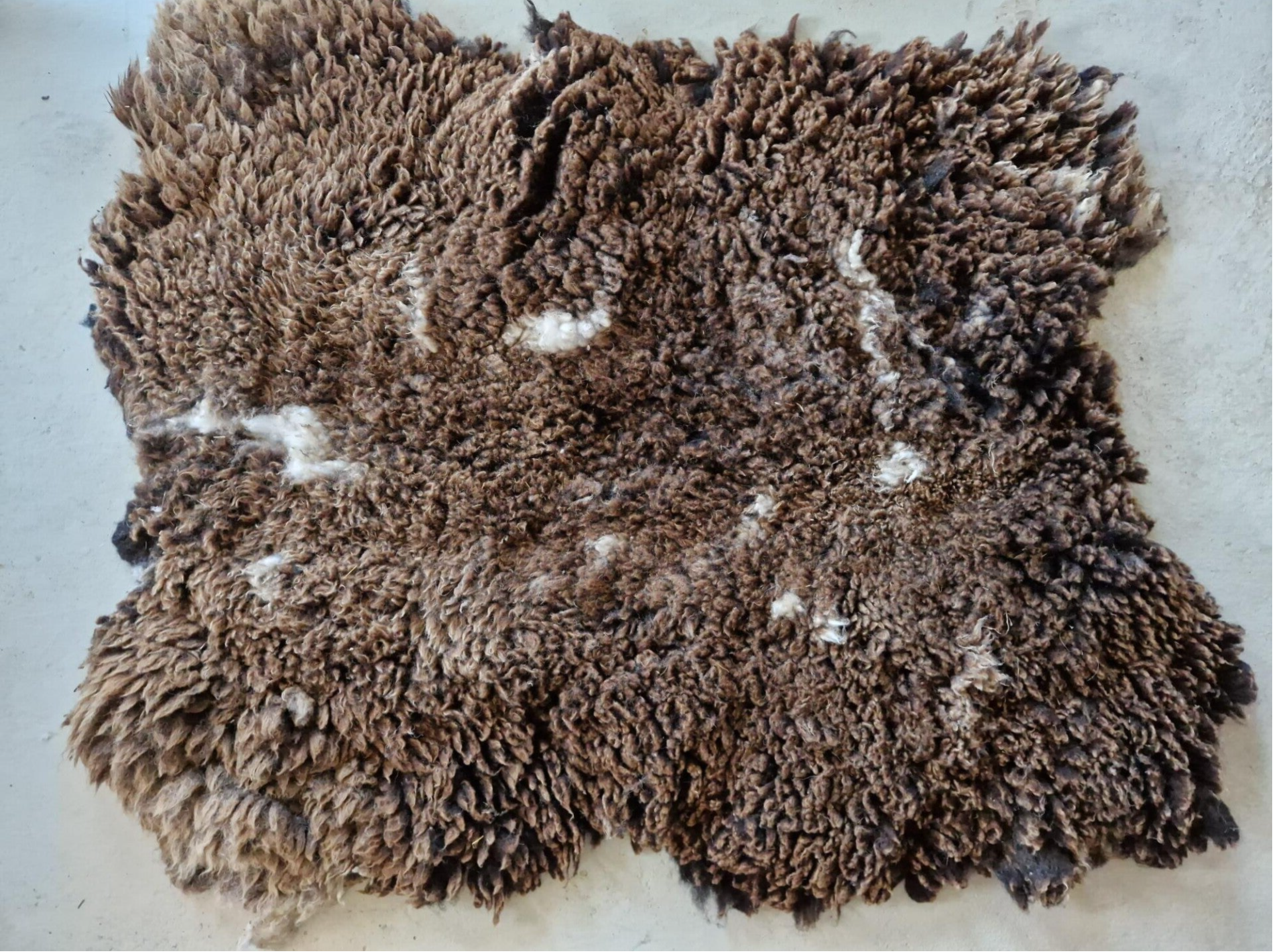 De wol komt van een Nederlands Bont Schaap uit Gelderland, waar hij woont in een hobbykoppel.
