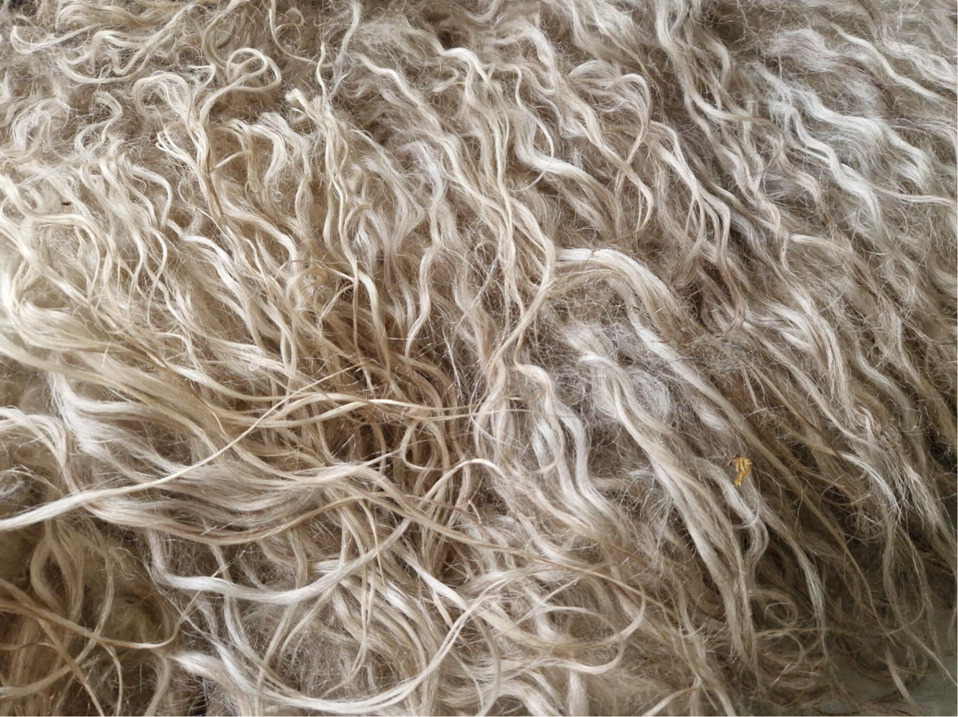 Prachtige, licht glanzende krullen in champagne, crème en grijs.