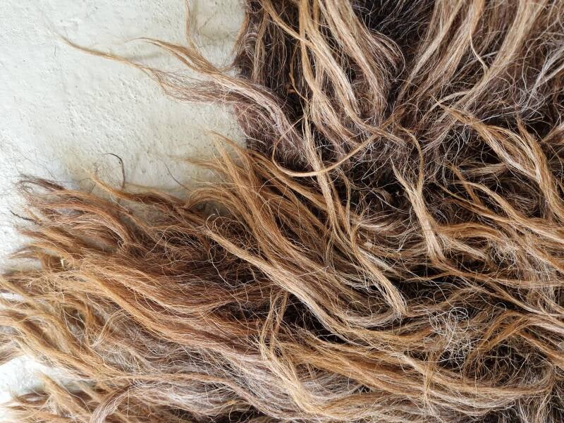 Het vachtje zal nog haren. Vachtjes #794 en #795 zijn gemaakt van wol van hetzelfde schaap.