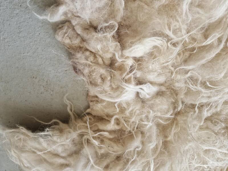 De wol komt van een Drents Heideschaap ram uit Flevoland, waar hij aan natuur- en cultuurbegrazing doet.