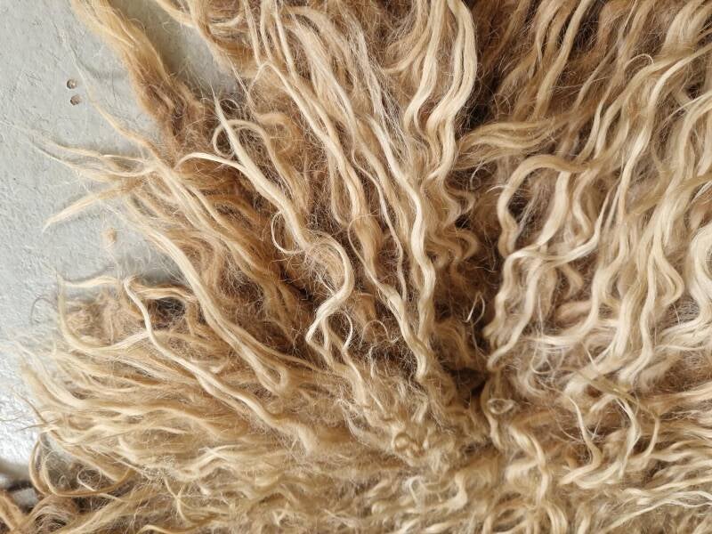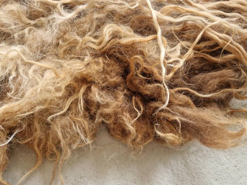 (Heel) lange lokken in camel, koper, uitlopend naar blond en goudblond.