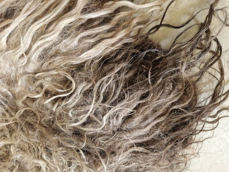 Prachtige lange lokken, het rugstuk tussen de schouderbladen is dik en heeft kortere krulletjes.