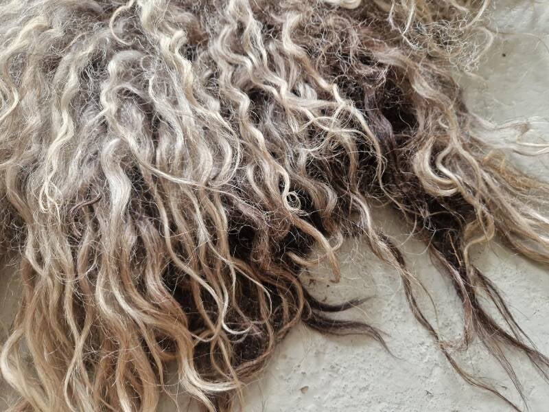 De wol komt van een Spelsau schaap, bekend om haar lange, kwalitatief mooie wol. Vachtjes #856, #857 en #858 zijn gemaakt van wol van hetzelfde schaap.
