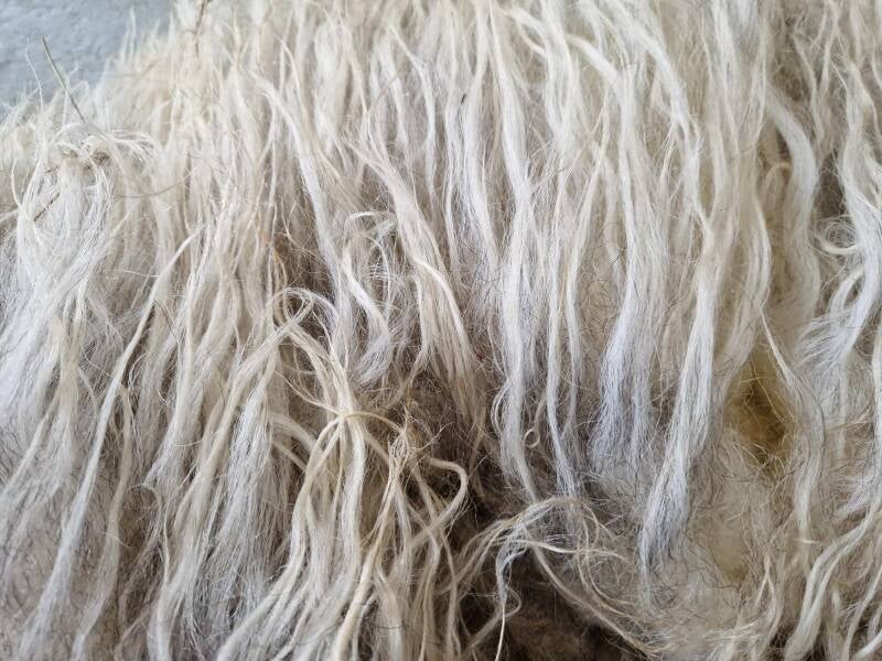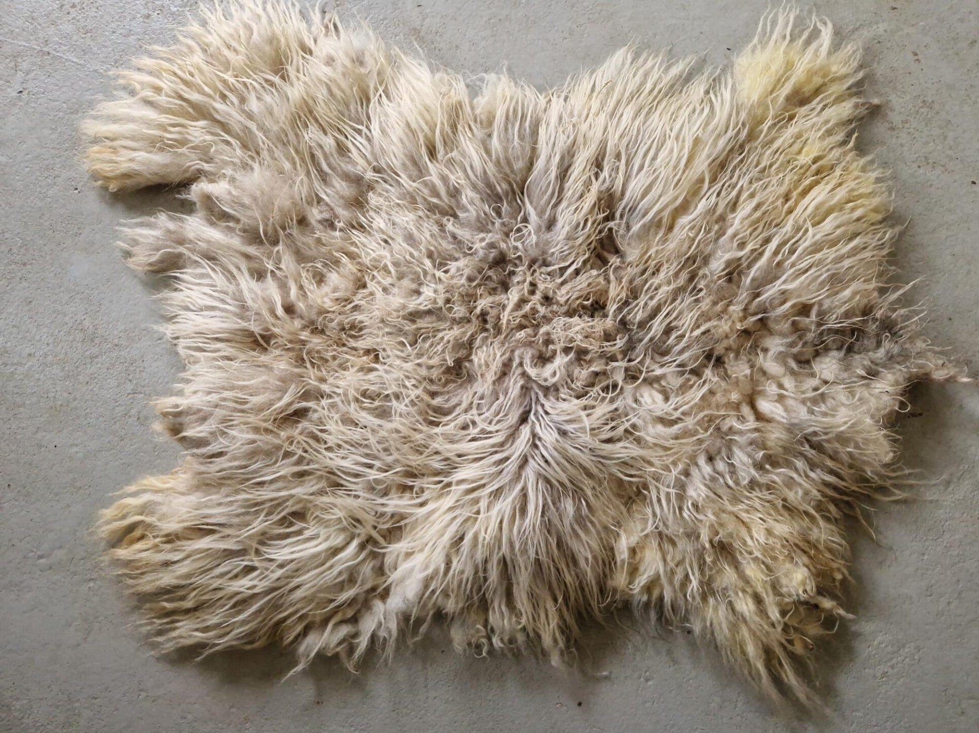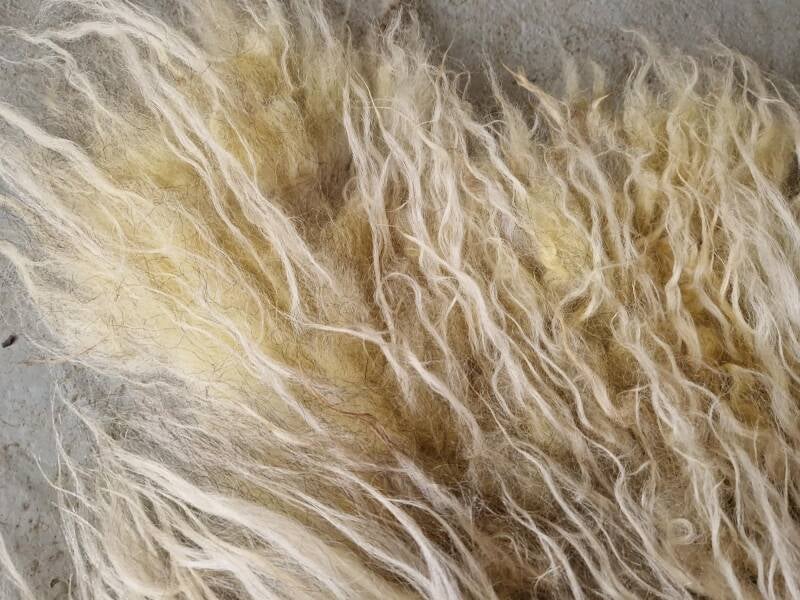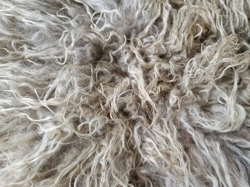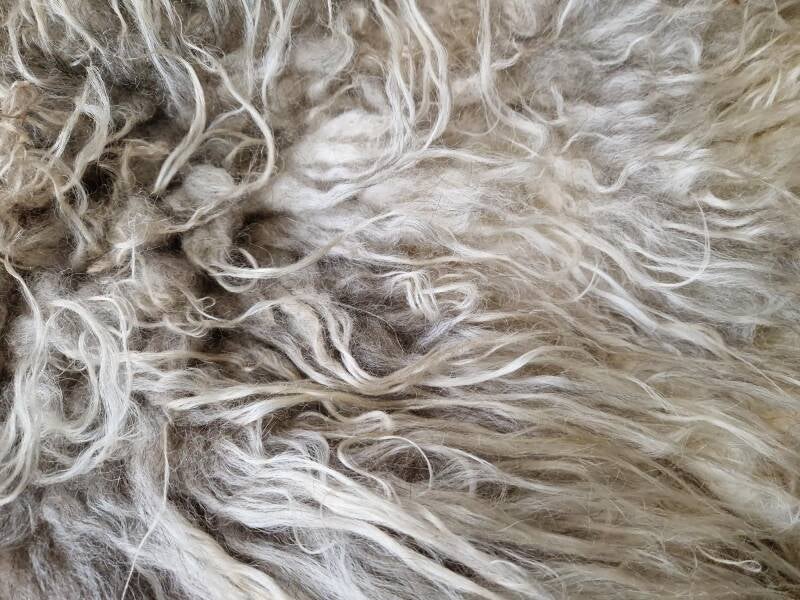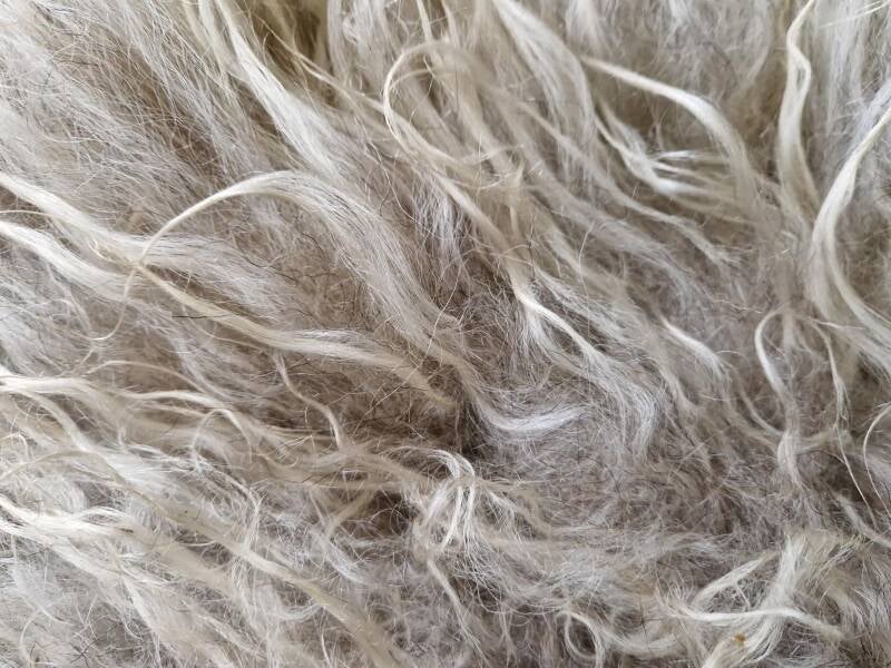 Wolwit, gelig en grijs.